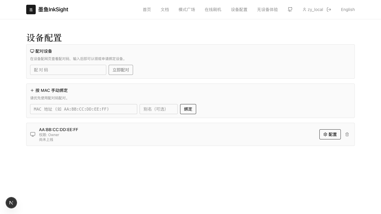 上图展示的是已登录且已有设备绑定时的入口状态。此时你可以直接进入设备列表、查看设备状态,并继续配置: