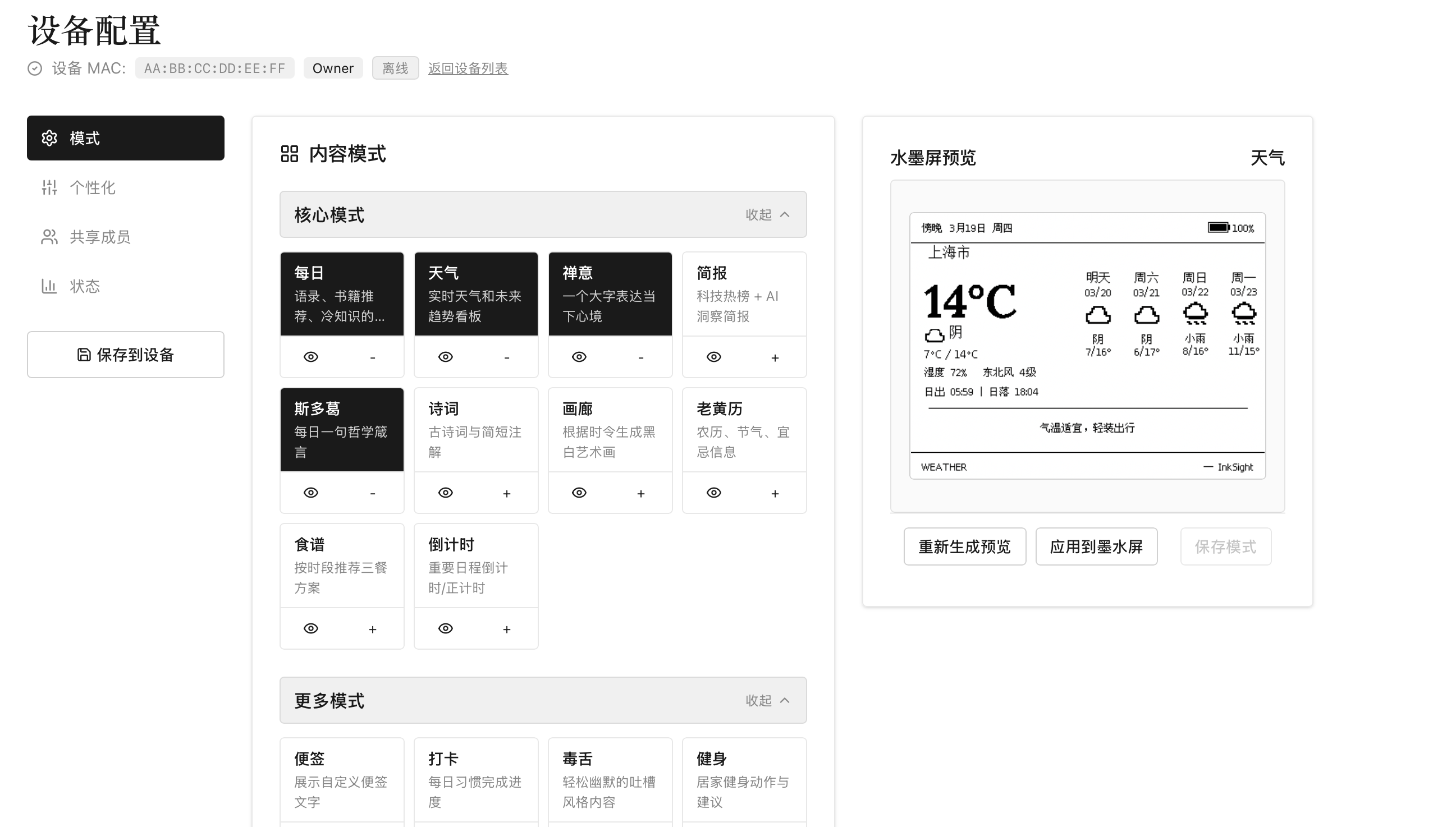 - 你可以先选模式,再生成墨水屏预览图。